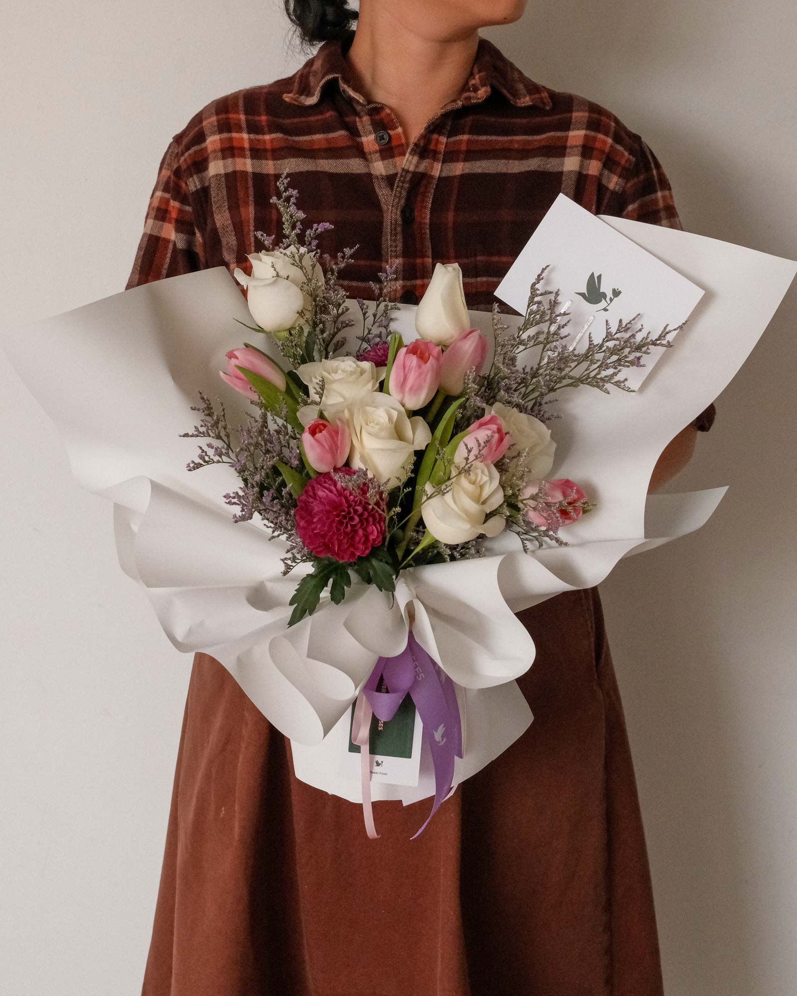 Due to the natural beauty of flowers, the shades and tones may vary slightly from the product image. Seasonal changes may also affect the availability of certain flowers, fillers, and foliage. When substitutions are necessary, we ensure they are of equal or higher quality.