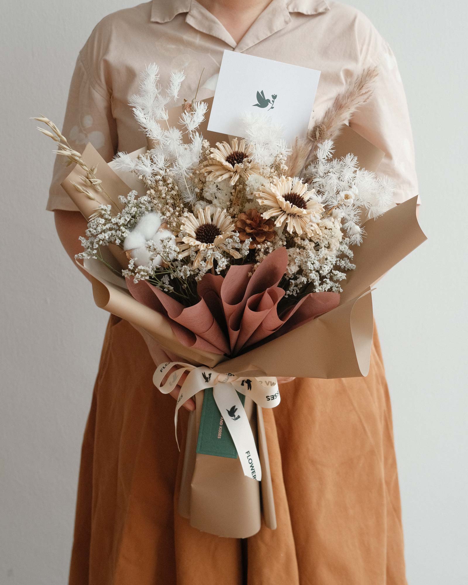 this bouquet really got the vibes! Ordered for my friend, and she say sibeh nice. The dried flowers look super classy, just like the photo. Packaging also very on point, and delivery was fast