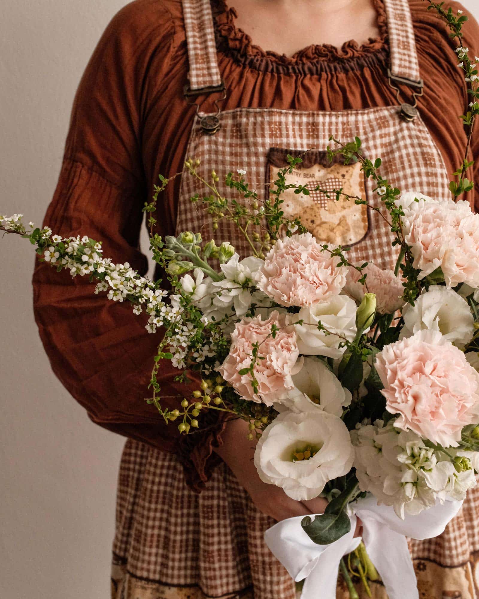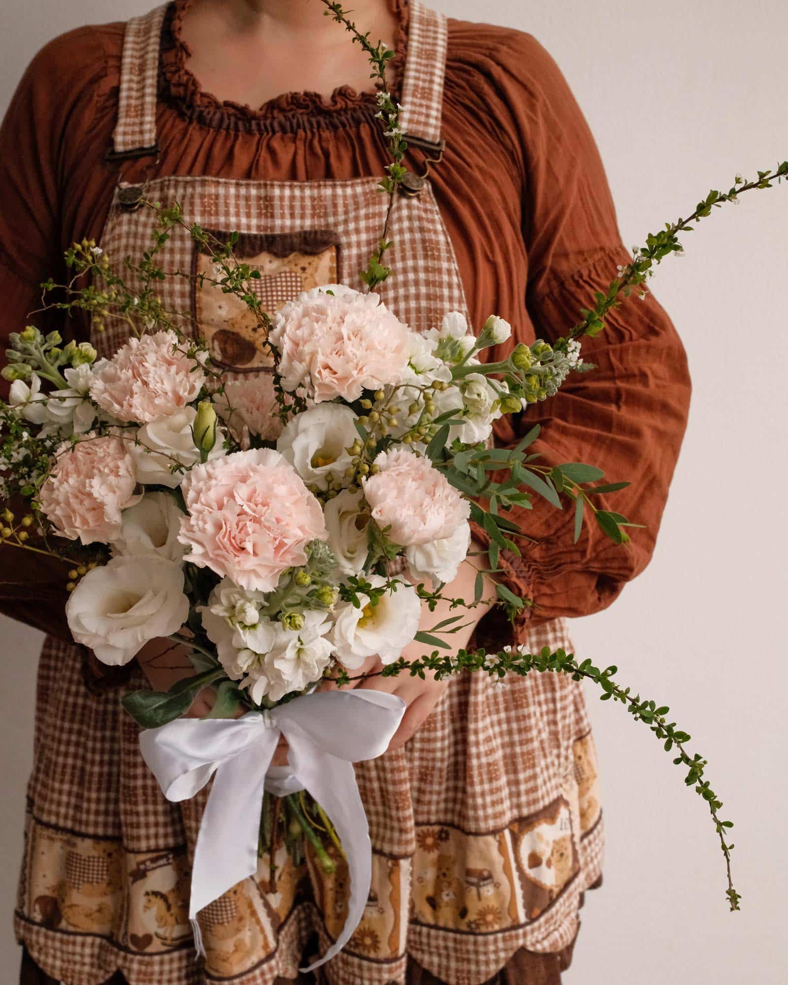 Contains: Holland Carnation, Spirea, White Mathiola, White Lisianthus, Foliage