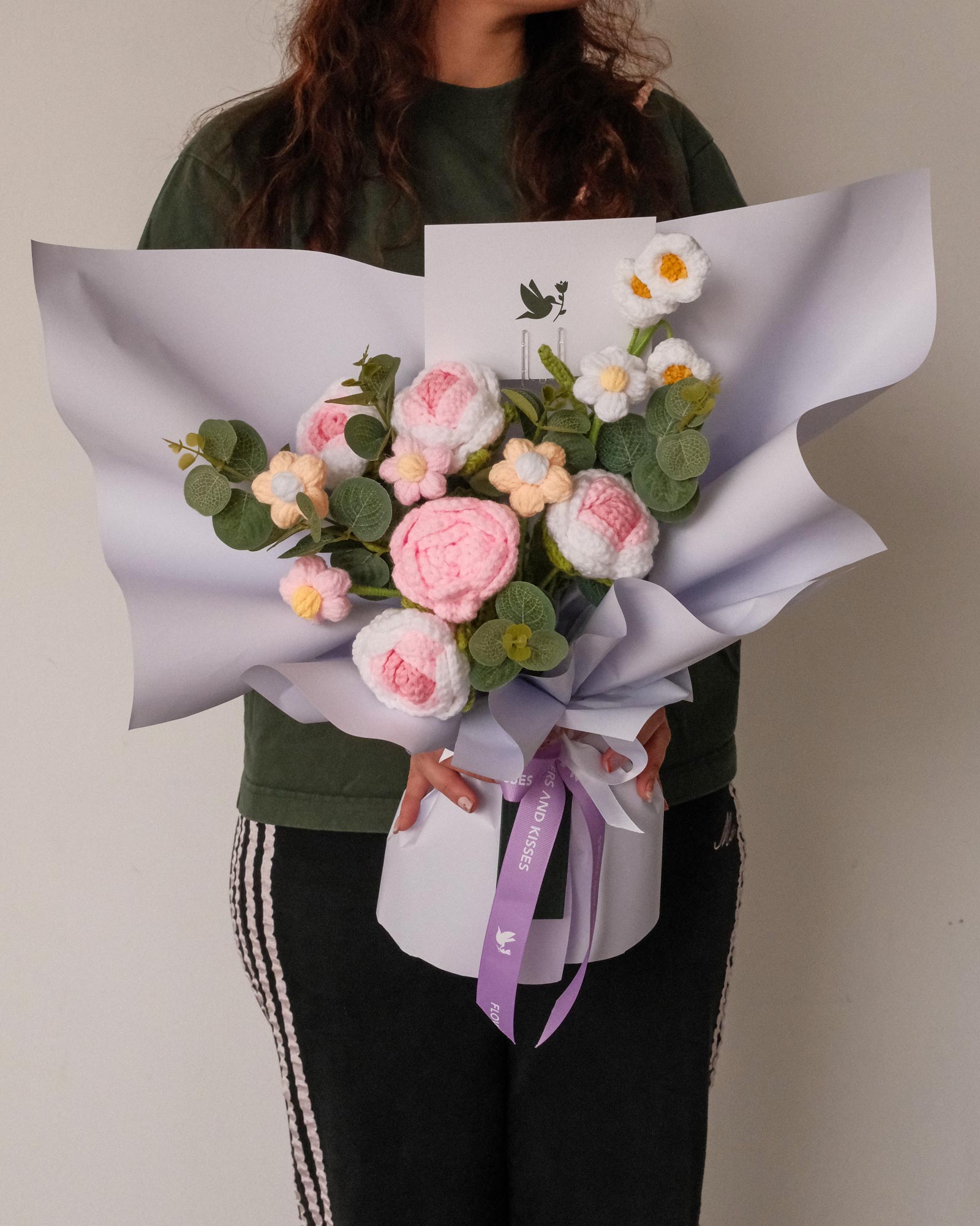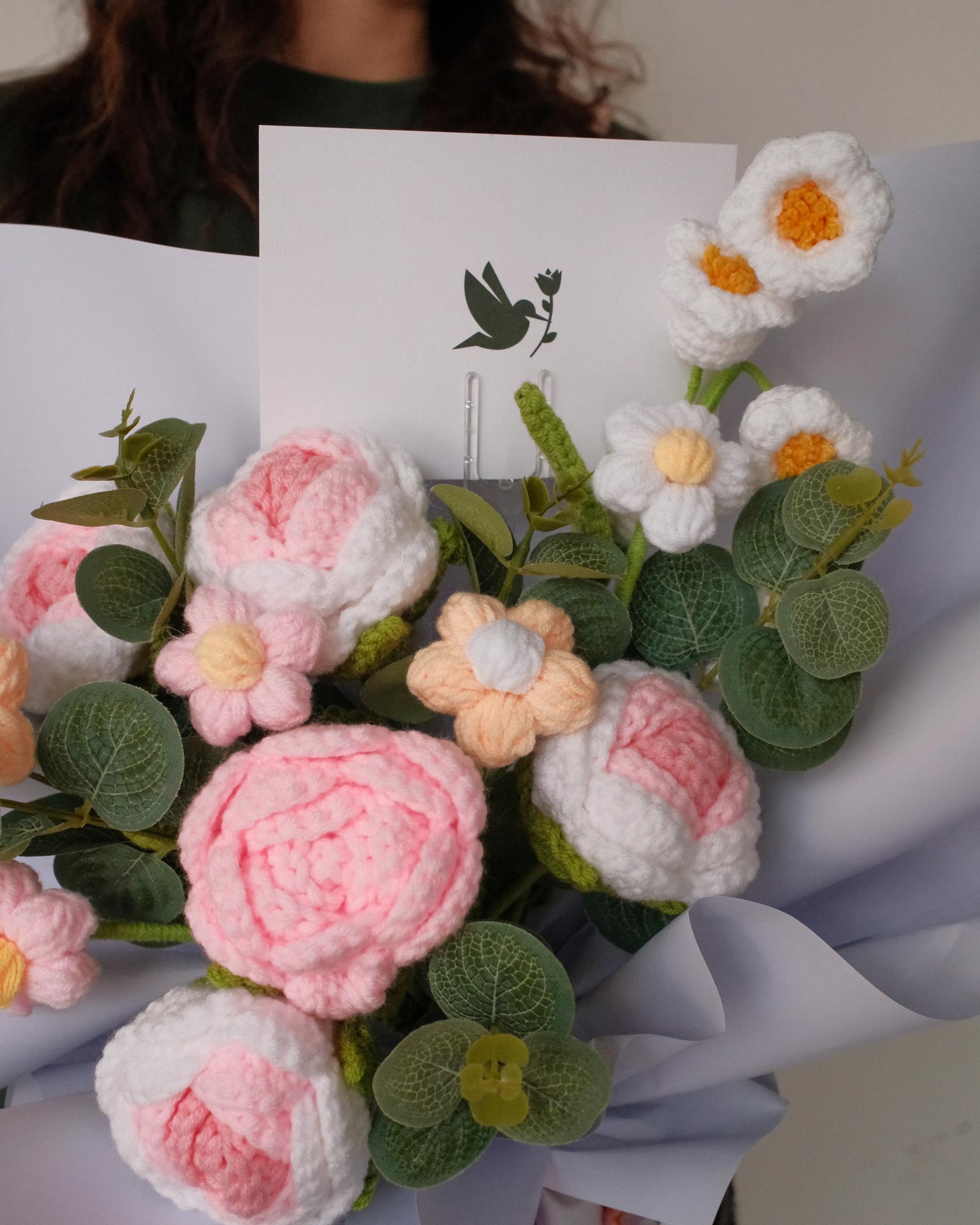 Contains: 5 Crochet Rose, Crochet Daisy, Faux Foliage