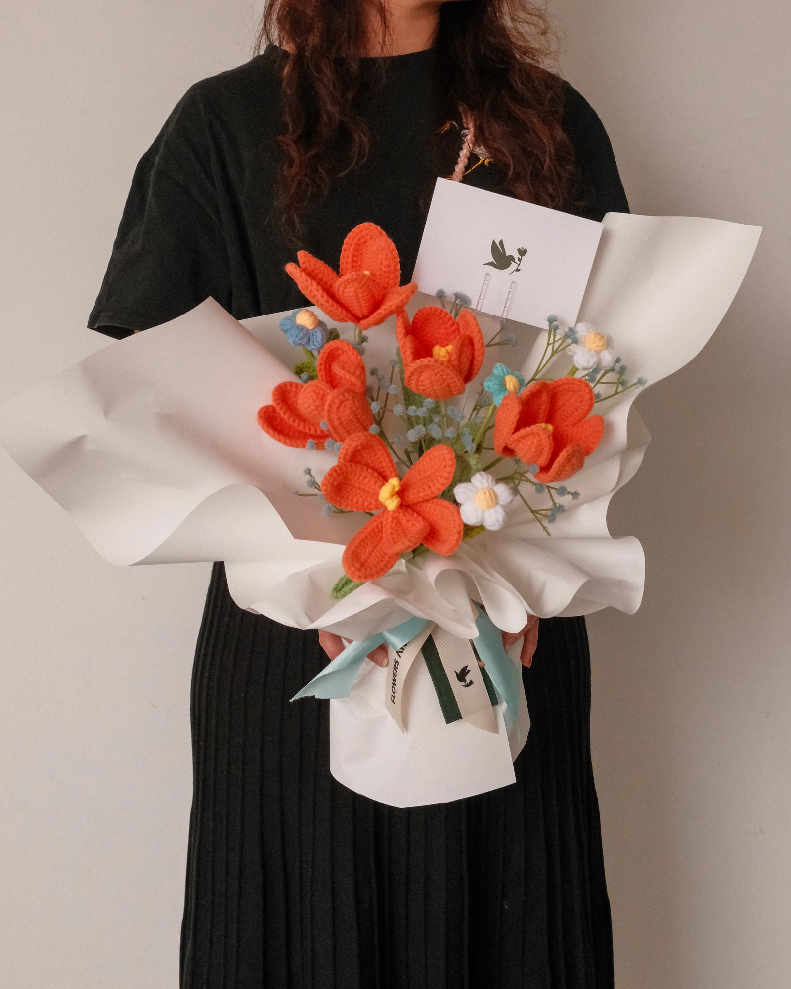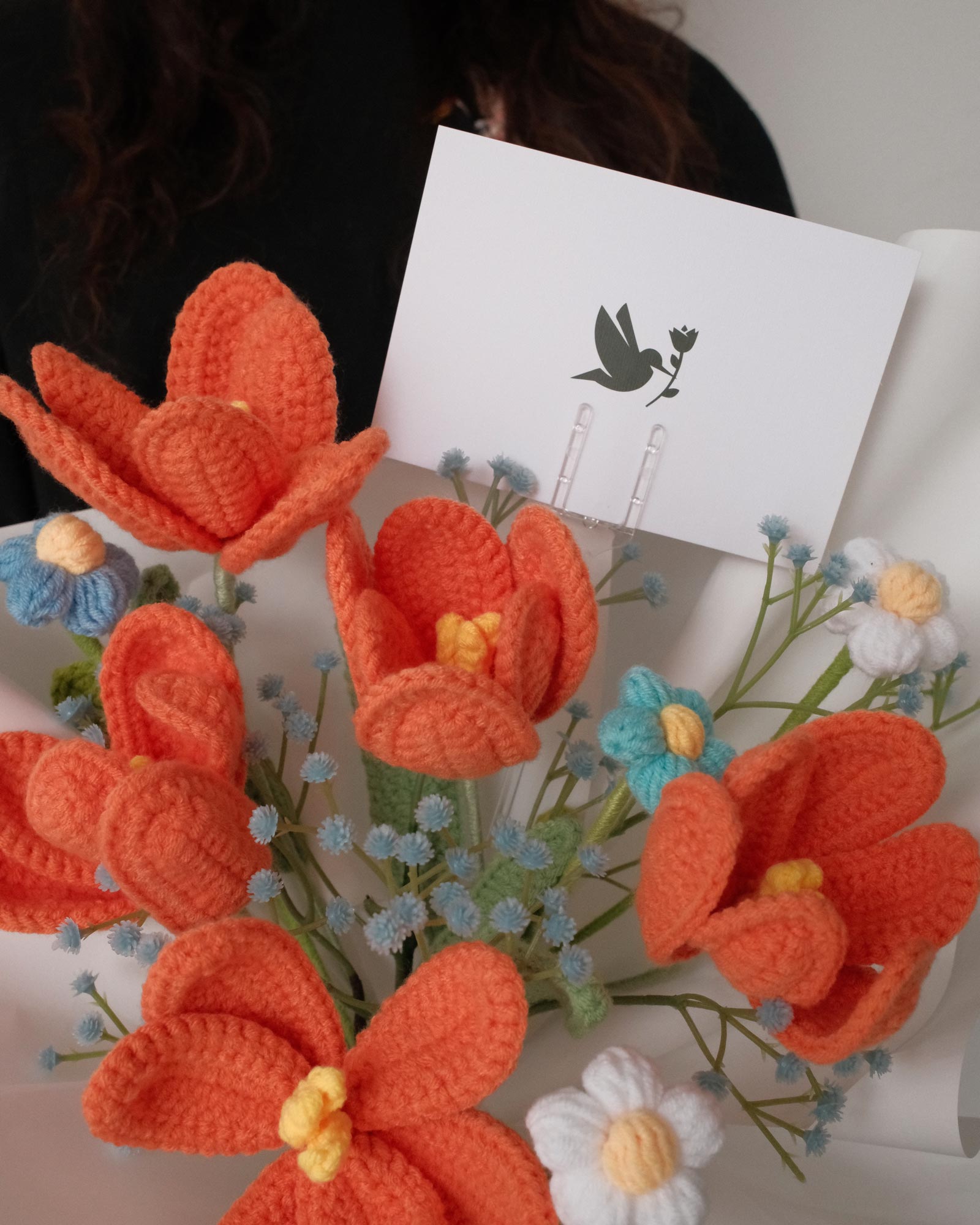 Contains: 5 Crochet Tulips, Mini Crochet Daisies & Other Faux Foliage